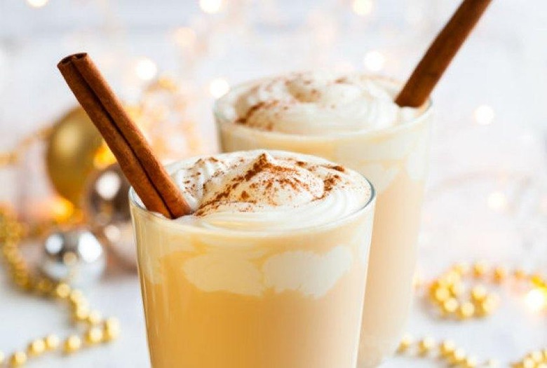 This recipe for eggnog is a winner. It uses 12 eggs, lots of heavy cream, nutmeg, and vanilla. Then, the mixture is graced with bourbon, brandy, and dark rum. For the best — and safest — results, use the highest quality of eggs.
