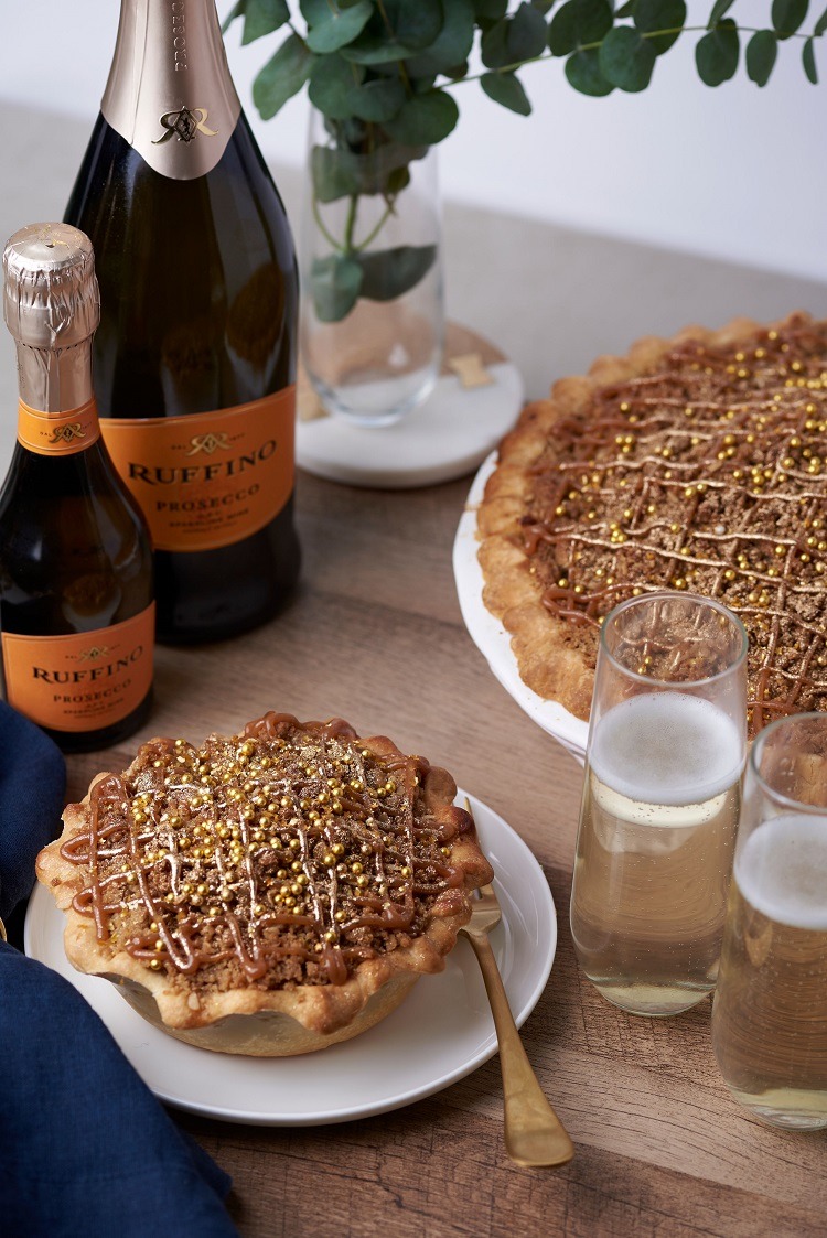 Say hello to the limited-edition Salted Caramel Prosecco Pie, a chic party pastry created by Ruffino Wines and New York City-based Little Pie Company. It's made with apple, brown sugar, salted caramel and real Ruffino Prosecco with notes of apple and citrus, and it's topped with gold sugar pearls.
