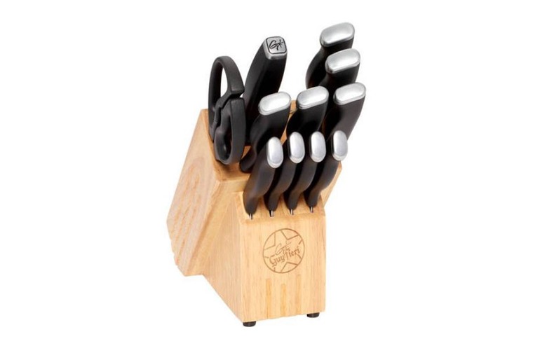 You can't cook like Guy without having equipment like Guy! The outlandishly-styled chef has toned down the colors and designs of his cutlery sets. The flames are long gone, replaced by a bold red and black design featuring Guy's signature logo. Priced at $39.95, this 12-piece knife set is a good, practical mid-priced present for budding chefs in your family.