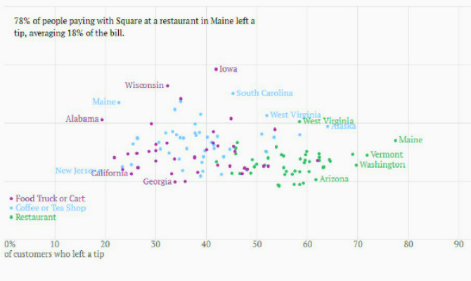 But if you look at the numbers by percentage of regular tippers, New Jersey is the worst. Only 42 percent of New Jerseyians tip regularly. On the opposite end of the scale, almost 80 percent of Maine residents tip regularly.